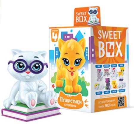 Jedes Kätzchen hat eine geheime Lieblingsbeschäftigung, von der niemand etwas weiß! Entdecke alle Geheimnisse der kleinen Kätzchen und finde deinen Helden. Sweet Box „Kätzchen“. Inhalt: Fruchtgummis und ein Spielzeug. Fruchtgummis mit Fruchtsaft und mit Orangen-, Apfel-, Erdbeeren-, Pfirsich- oder Mangogeschmack 8 Sammelfiguren mit samtweicher Oberfläche.